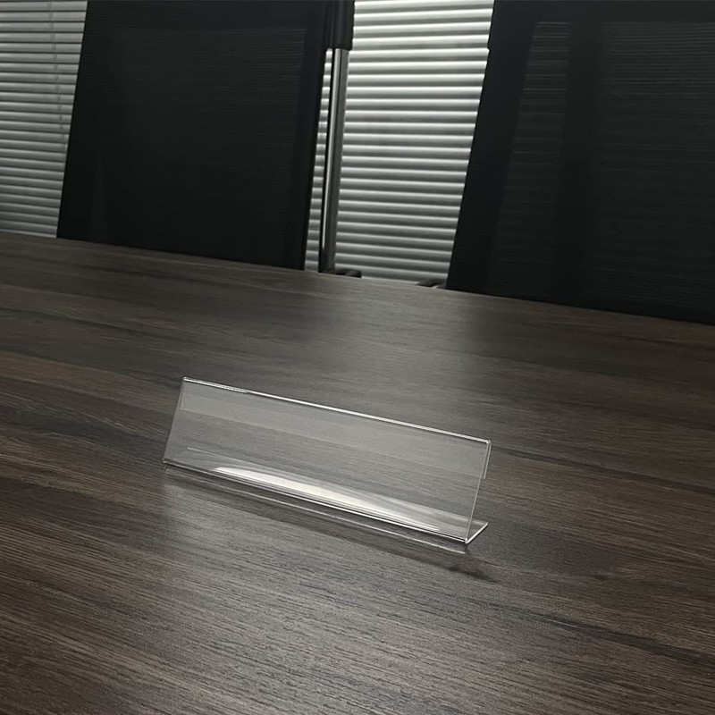 - Desk name plates are made of high quality clear acrylic. Acrylic is a shatter-resistant material that boasts great strength despite its light weight. It can be displayed on the desktop and almost any other surface.