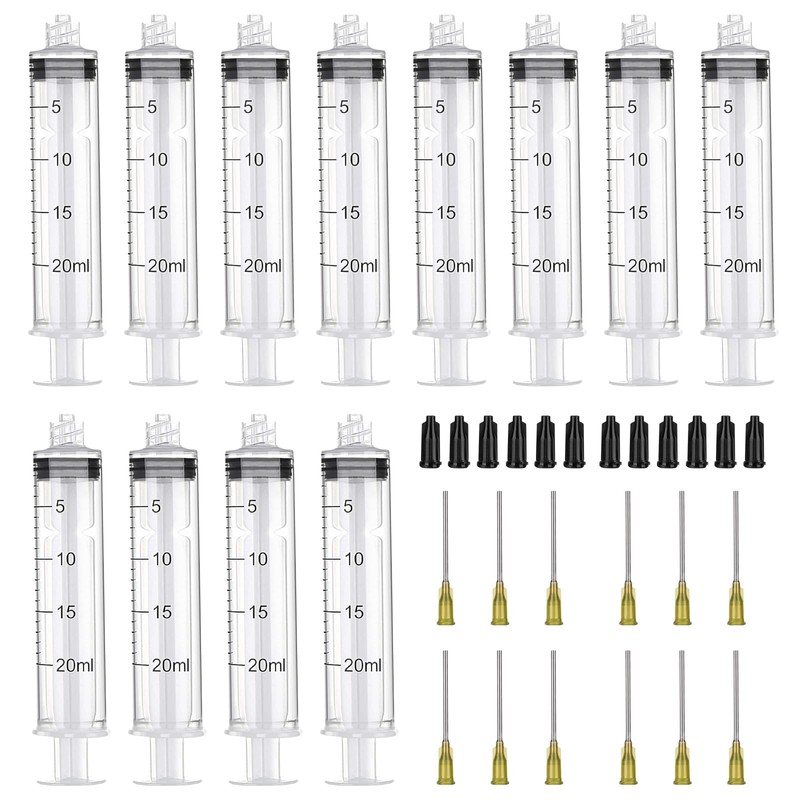 - 💉 【Packaging Includes】Large syringe specifications, 12pcs Syringe 20ml, Blunt Needle and Cap Black to be used or replaced. Unsterilised blunt needles cannot be used for injections and medical treatments and can be used for industrial purposes.