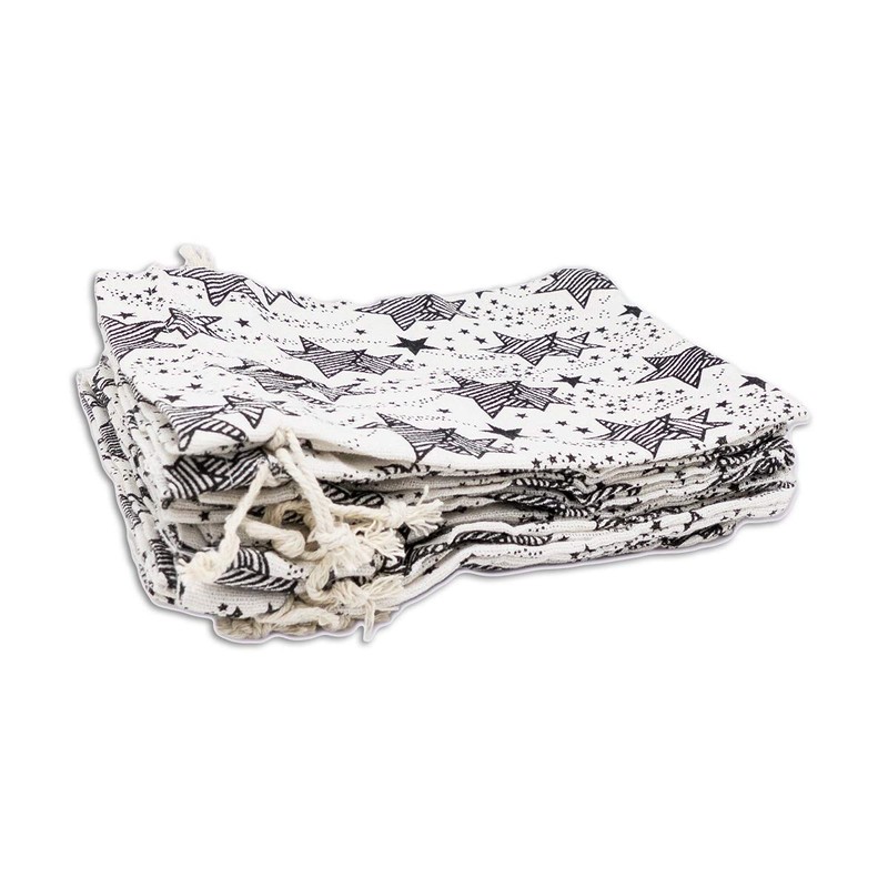 12-Pack 3x4 Reusable Cotton Canvas Muslin Gift Bags w. Drawstrings (Black Stars, X-Small) - for Presents, Party Favors, Retail, Samples by TheDisplayGuys