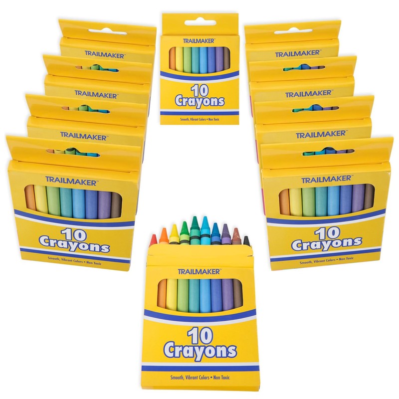 12 Pack Crayons - Wholesale Bright Wax Coloring Crayons in Bulk, 10 Per Box, 12 Box Bundle Art Set by Trail maker