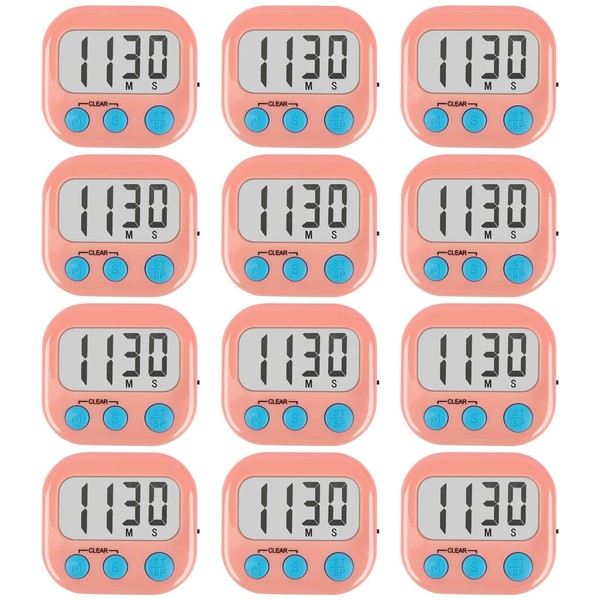 12 Pack Digital Kitchen Timers for Cooking Magnetic Timer for Cooking Loud Alarm Pink