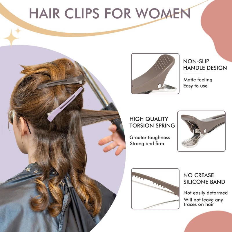12 Pack Duck Bill Hair Clips Rustproof Metal Curl Clips for Hair Styling