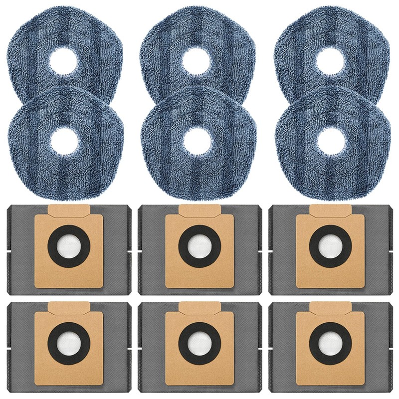 12 Pack Dust Bags Mop Pads Combination Set Compatible with X10 Pro Omni Accessories Robot Vacuum Cleaner, Robot Vacuum Replacement Accessories with 6×Mop Pads, 6×Dust Bags