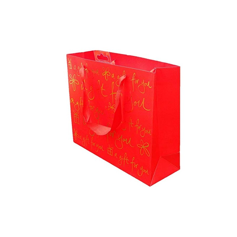 - Elegant finish: matt, red, pink, black or silver, covered with "A gift for you", respectively gold, silver or ruby on a metallic side; Handle: wide, elegant, satin ribbon, silver, pink or red; 210 GSM paper. White inner side