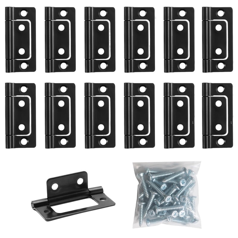 - Product Attributes: Includes 12 sturdy black hinges (51mm x 24mm) and 48 matching screws (12 hinges + 4 screws each). flush hinges Ideal for various woodworking and installation projects.