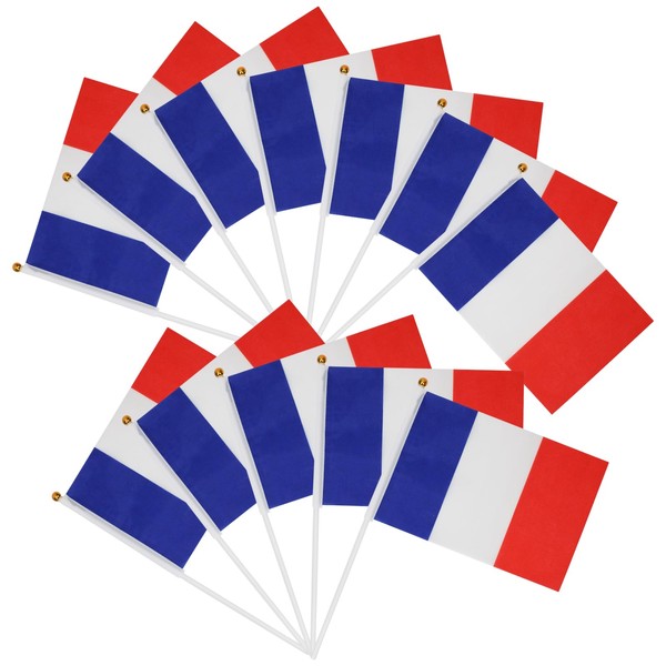 12 Pack France Decorations Flag Handheld Mini France Flags on Stick 5.5x8.2 Inch for Outside Patriotic Holiday Yard Patio Decorations (France)