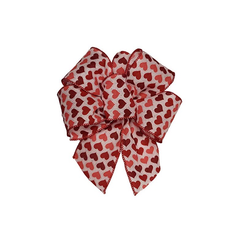 12-Pack, Love Collection Bows, Peach & Red Hearts on White 2.5" Wide Wired Edge Ribbon, 4-Loops and Center Loop, 7" Wide by 8" Long with Two 4" Tails. Exquisite Beauty for Every Budget.