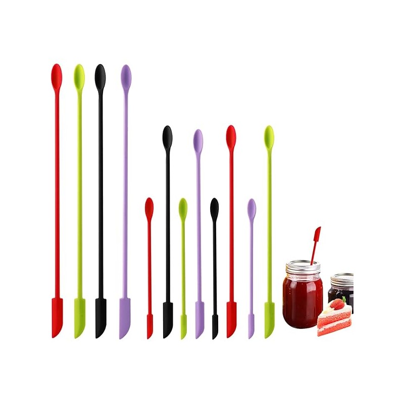 12 Pack Mini Spatula Silicone Small Thin Scooping Spoons Double-End Makeup Spatula Scraper for Jar Bottles Kitchen Beauty Cosmetic