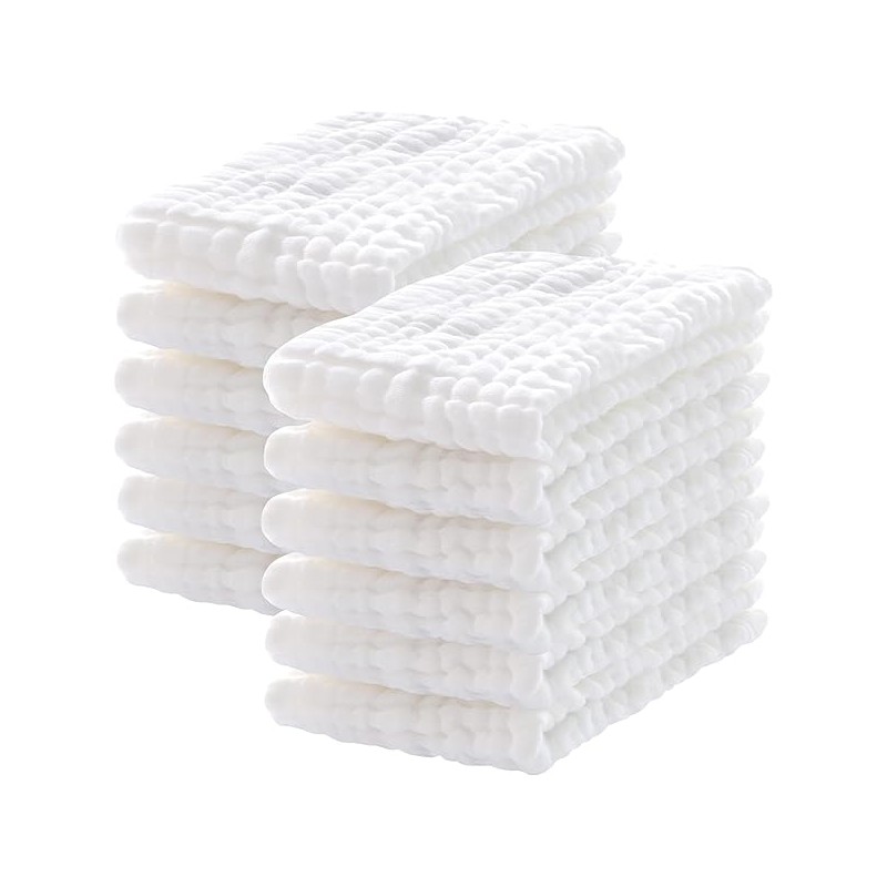 12 Pack Muslin Burp Cloths 100% Cotton Muslin Cloths Large 20''x10'' Extra Soft and Absorbent Baby Burping Cloth - White