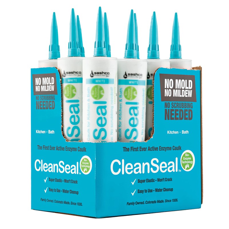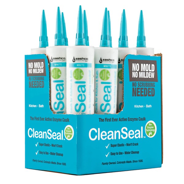12-Pack of 10.5 Oz. Sashco 11073 White CleanSeal Active Enzyme Caulk for Kitchen and Bath