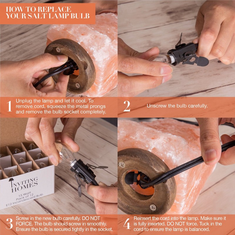INVITING HOMES Salt Lamp Bulbs come with a 90-Day Money Back Guarantee. Get a great value pack of 12 incandescent bulbs that are dimmable and compact to set the mood and lighting at home or the office.