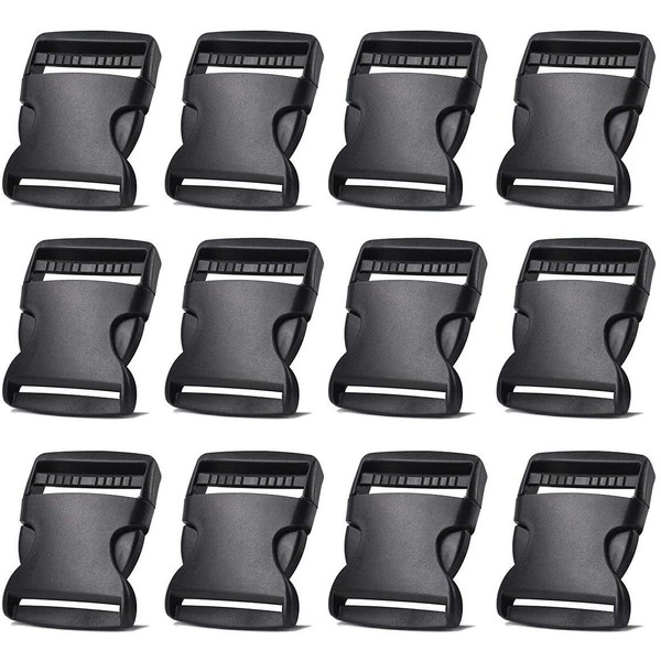 12 Pack Plastic Buckles 2 Inch Adjustable Quick Side Release Buckles for Dog Collars, Webbing Strap and Backpack Repair (Black)