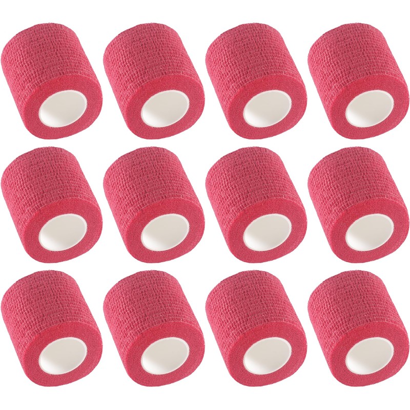- Dimension & Quantity: Pack of 12 rolls Red self adhesive bandage wrap 2 Inches x 5 Yards. Each bandage roll is individually packaged, more safe, portable, and can be used for a long time.