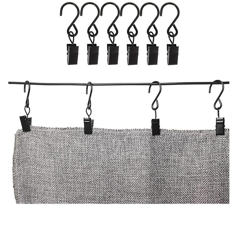 - Unique Design: The curtain clip is designed with S-shaped hook and clip, which iUnique Design: The curtain clip is designed with S-shaped hook and clip, which is very easy to hang and disassemble. The clip is serrated and has a strong bite force. The small and exquisite design S hooks very easy to hang and disassemble. The clip is serrated and has a strong bite force. The small and exquisite design S hook