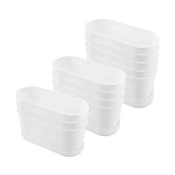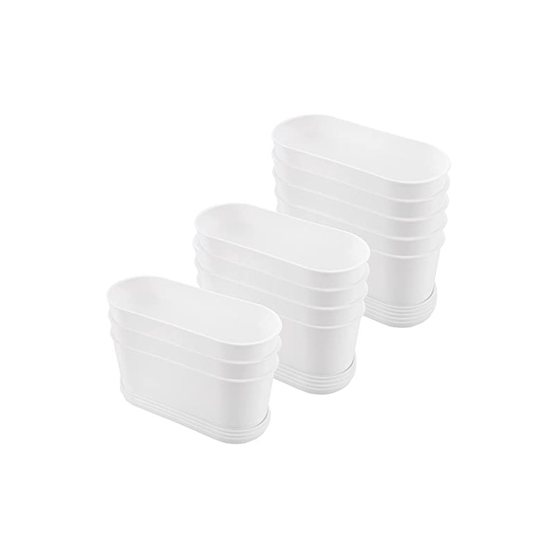 12 Pack White Rectangle Flower Plant Pot, 9 x 3.5 x 3.2 Inch Plastic Rectangle Planter with Tray and Drainage Holes