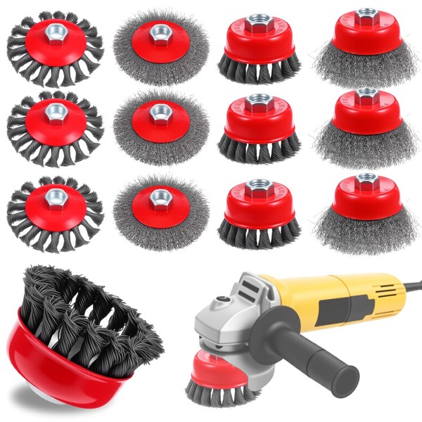 12 Pack Wire Wheel for Angle Grinder, Coarse Crimped Wire Wheel Brush Wire Cup Brush 4 1/2 Angle Grinder Wire Wheel, Angle Grinder Attachments with 5/8-11unc Threaded Arbor