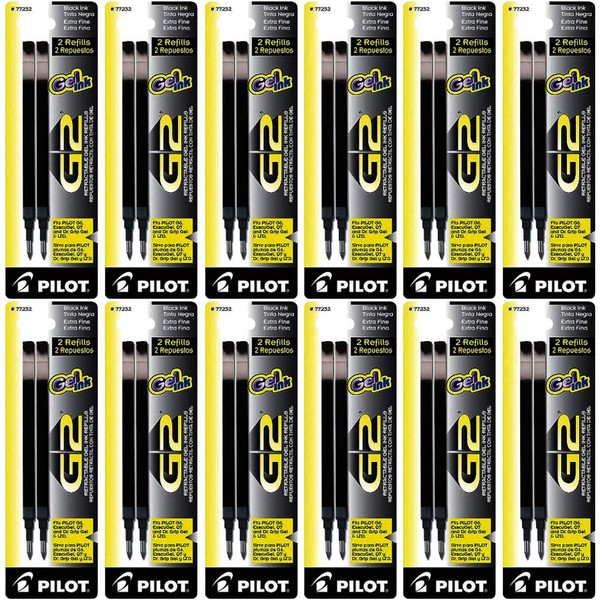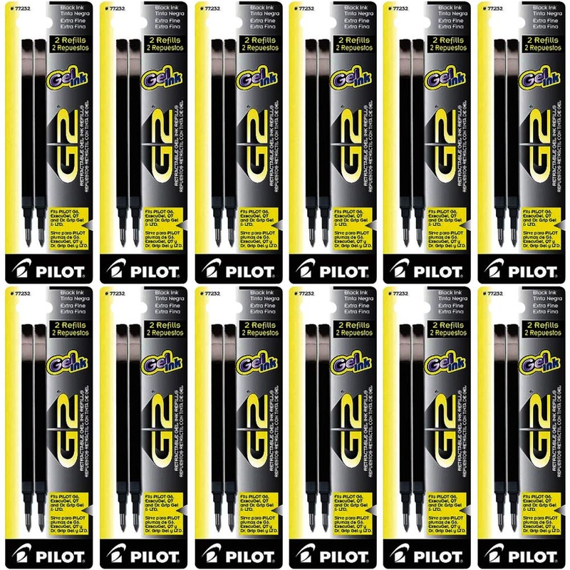 12 PACKS- 24 REFILLS: Pilot G2 Gel Ink Refill, 2-Pack for Rolling Ball Pens, Extra Fine Point, Black Ink (77232)