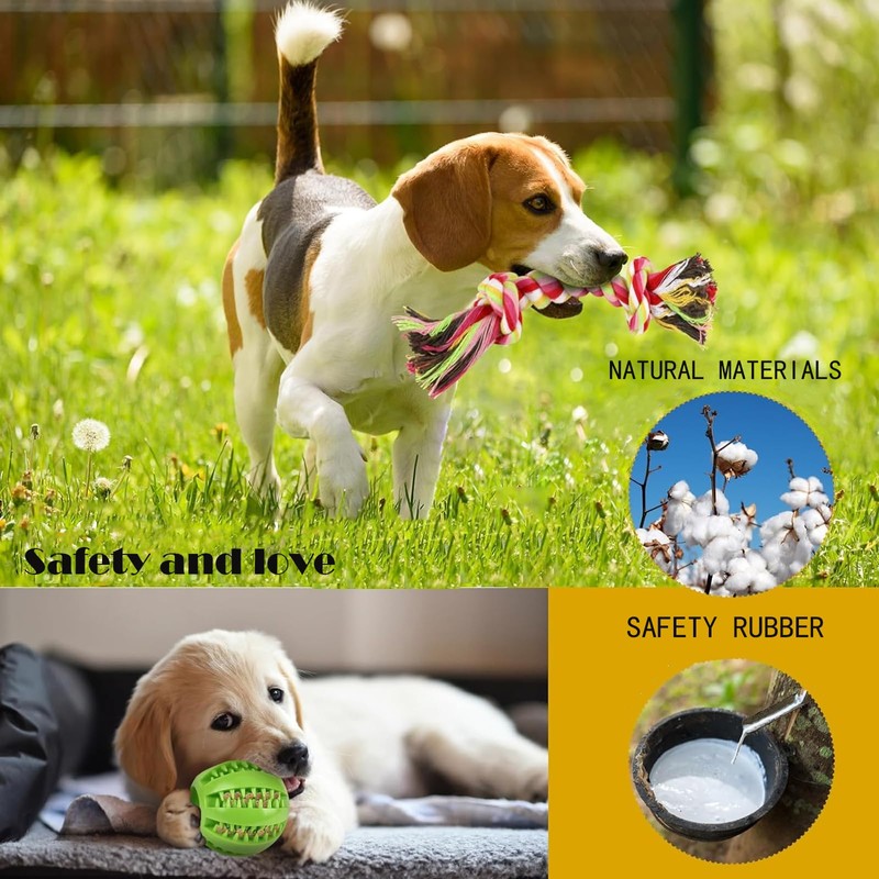 - Safe and Healthy Dog Bite toys: This set of toys can help clean or exercise your puppy's teeth, control tartar when chewing, reduce the growth of bacteria, and keep gum disease away, dog leash toys are made of 100% natural washable cotton and chewable rubber, non-toxic, tasteless, and chewable, so your pet can chew and play safely.