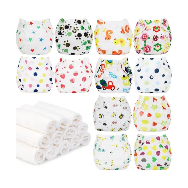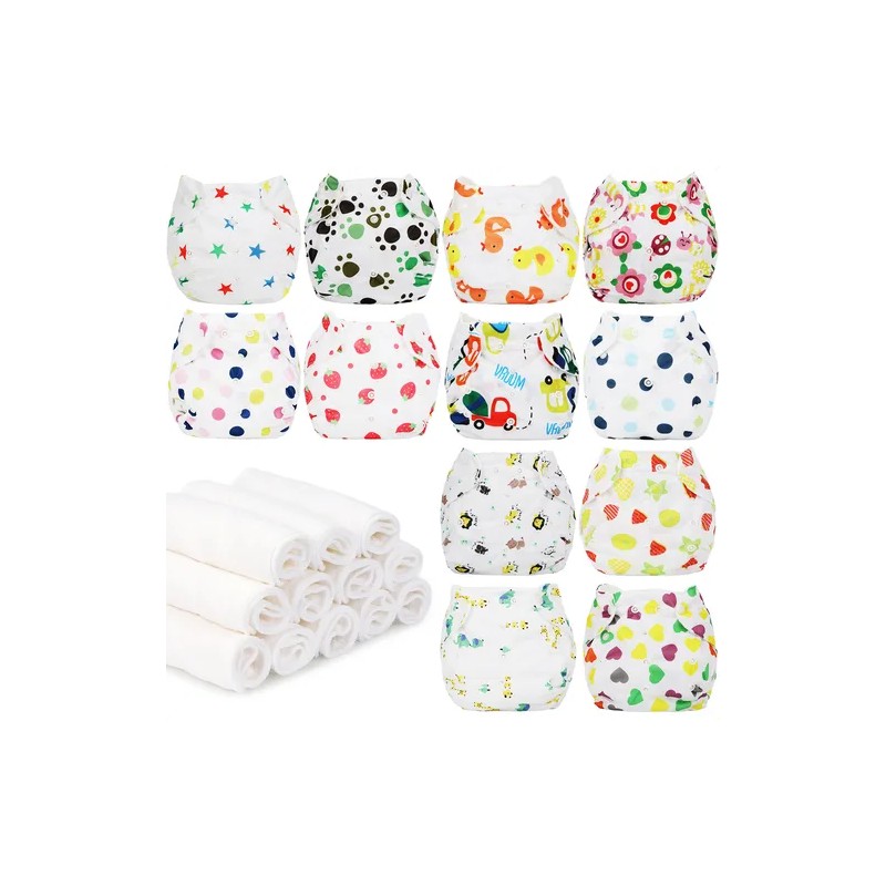 12 Pañales Ecológicos Reutilizables De Tela 12+12 Insertos