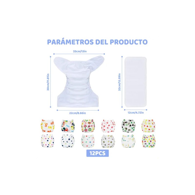 12 Pañales Ecológicos Reutilizables De Tela 12+12 Insertos