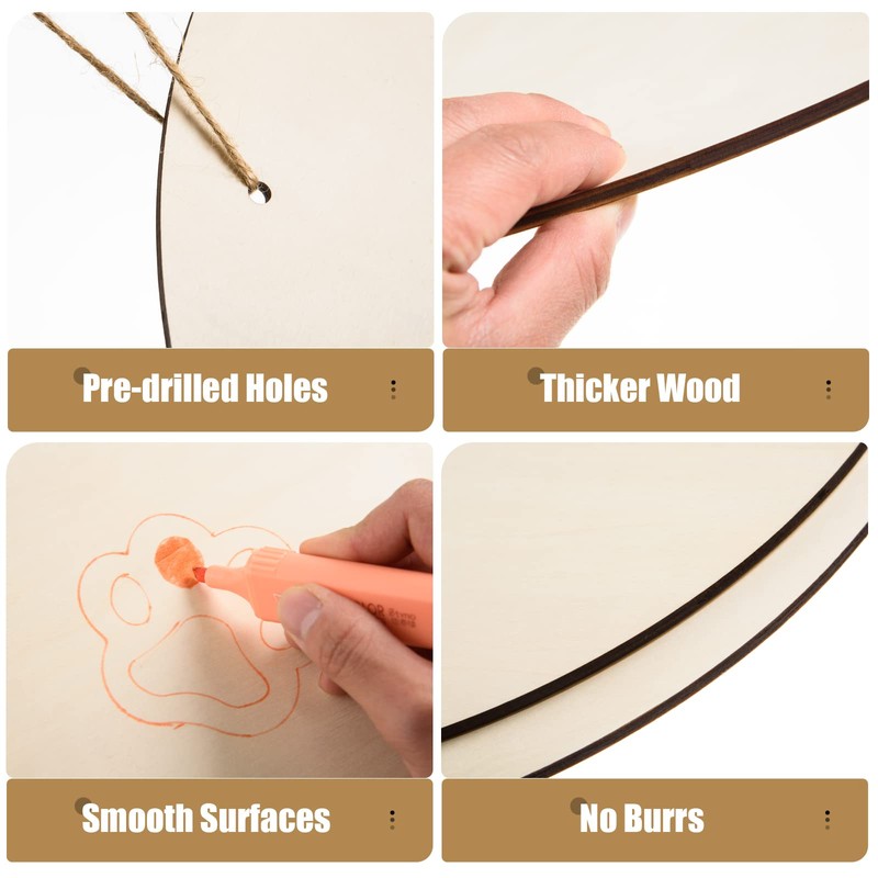 - Fun to DIY: the wood circles feature blank smooth surfaces, which allows you to write words, paint patterns and stain, you also can decorate them with ribbon, bow, sequins, stickers, beads and more, just unleash your imagination and creativity, create your personalized home decor and enjoy the fun of DIY crafts projects