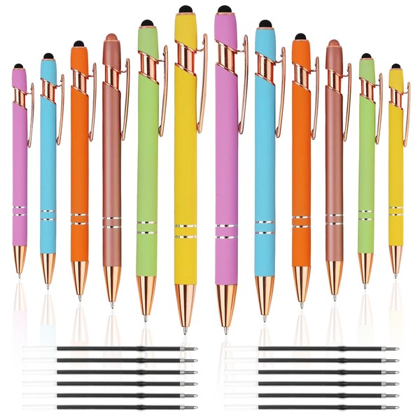 - Package Included: 12 pieces ballpoint pens with stylus tips , and Extra 12 picecs ink(total 24 pieces black ink) Ballpoint pen refills are replaceable