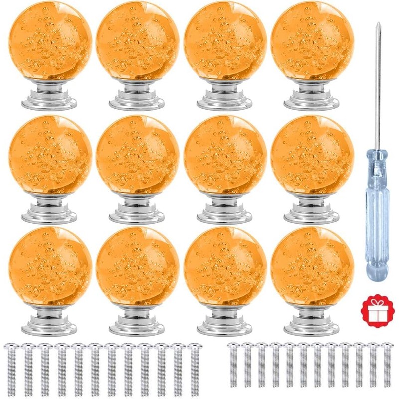 12 Pcs 30mm Round Bubble Crystal Glass Cabinet Knobs with Screws Drawer Knob Pull Handle Used for Kitchen, Dresser, Door, Cupboard (Amber)