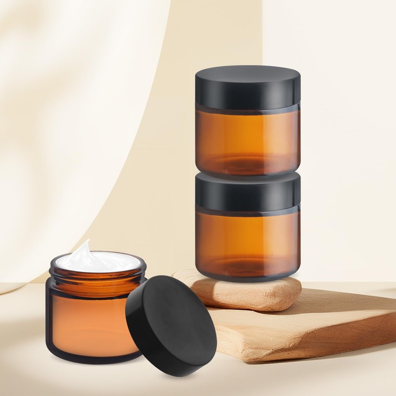 - Our empty jars are made of thickened brown glass, protect contents from harmful lights. Plastic black lids, classic and stable, no scratched.