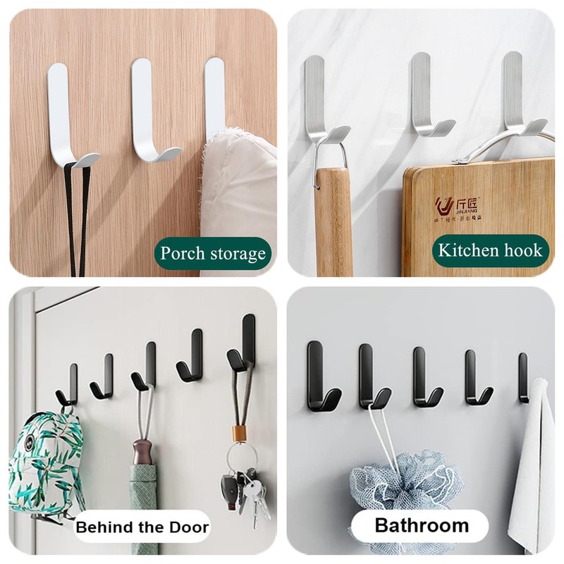 - 【Simple and Practical】 Key hooks for wall for hanging is made of metal stainless material, waterproof, oil proof, and heat resistant, can fit all environments, so no worry it will lose the stickiness and fall down, you could use them in the living room, bathrooms, kitchens and outdoors to arrange the stuff for saving space.