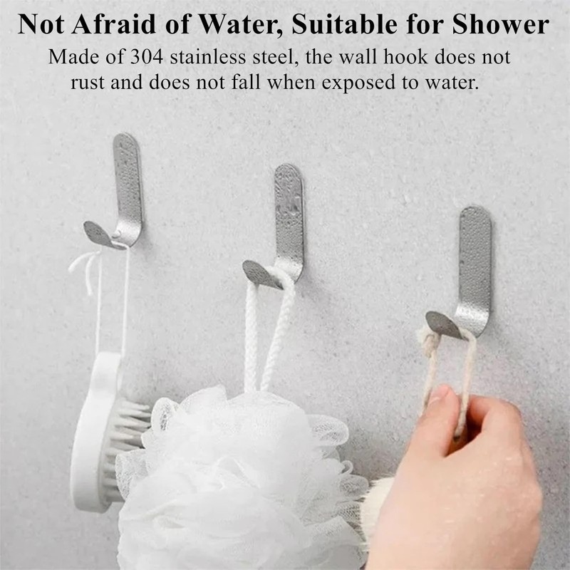 - 【Premium Material & Heavy Duty】 Adhesive wall hooks for hanging are made of premium and thickened 304 stainless steel, no sharp edges, are rustproof and heavy-duty, won`t be deformed easily, and we prepared powerful stickers, which make these shower hooks can stand with 22lbs weight.