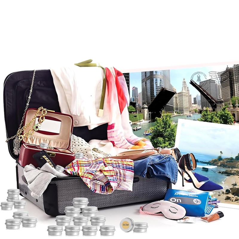 Our cosmetics container Made of high quality aluminium tinned material, which is durable and has a smooth surface and will not rust.The top has a threaded lid that is easy to close and open. Safe, non-toxic, no smell and durable. Protects the contents from direct sunlight, isolates dust, insects etc. Although the uniform aluminium tins are very neat and exquisite, it is difficult to distinguish the interior due to the uniform shape. You can use it to distinguish each aluminium can.The cream jars are lightweight and sturdy, easy to carry, ideal for storing items. Suitable for crafts, mini candles, cosmetics, herbs, nail art, hooks, beads, buttons, ointments, lip balms, lip gloss, cream, etc.