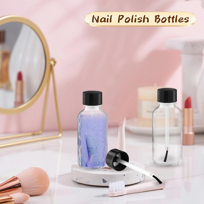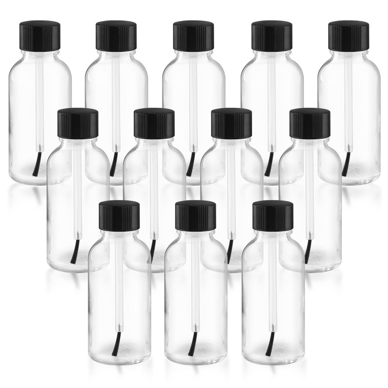 12 Pcs Clear Glass Nail Polish Bottle Empty Refillable Nail Polish Oil Bottles Travel Containers Vials with Brush Cap for DIY Nail Art Sample Oils - 30ml/1oz