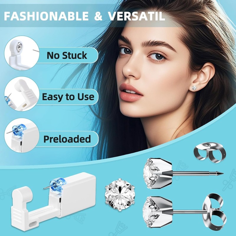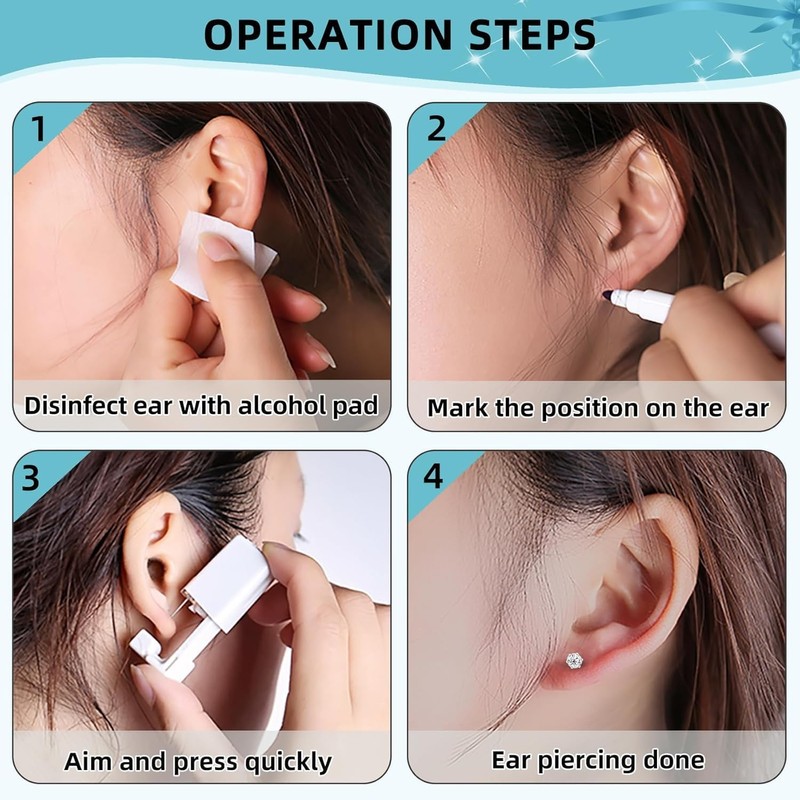 - EASY TO USE: Piercing is painless and simple, just like using a stapler. Simply clean your hands, open the individual package of the ear piercing gun and mark the area to be pierced. Aim, press, done. The ear stud will be fixed where you want it and you can even finish the piercing yourself