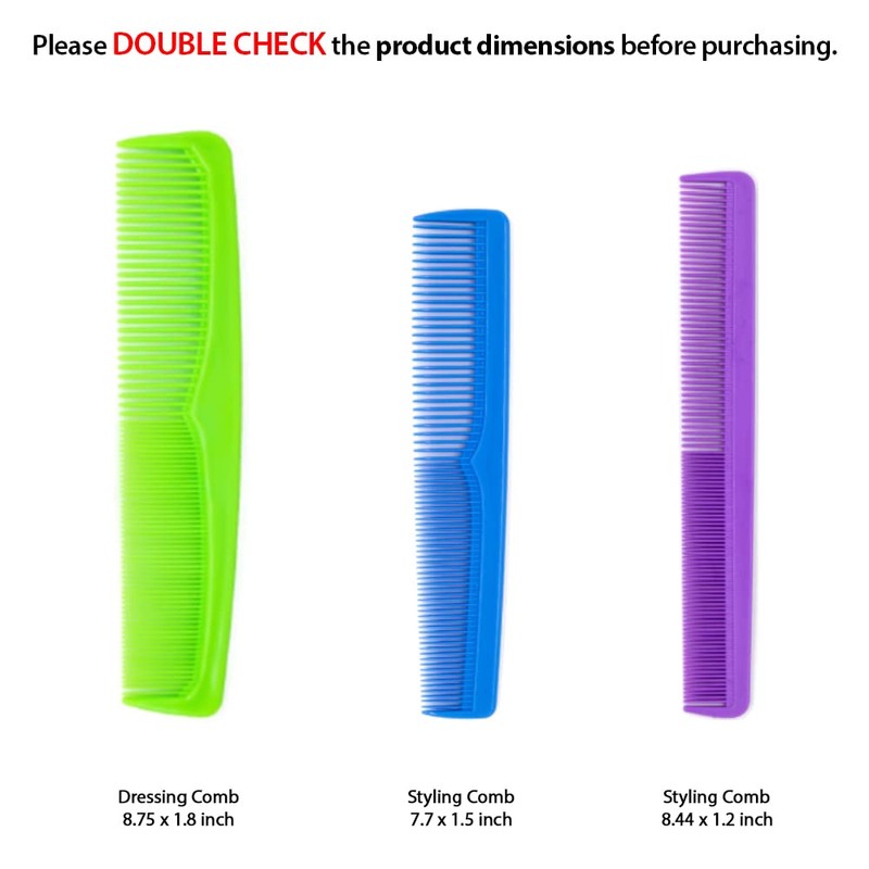 - PACKAGE - You'll receive 12 Pcs Plastic LARGE size Bulk Combs. Style: 7.7 inch Styling Comb / Color: Assorted