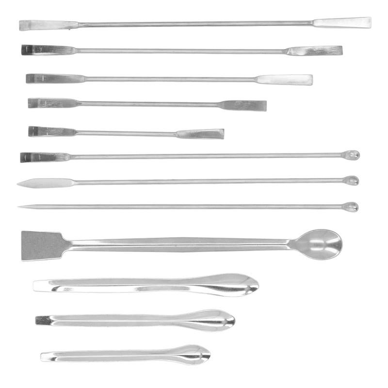 - Including 12pcs: This kit includes 12 different sizes and shapes of laboratory scoops. This stainless steel laboratory mini spoon kit is sufficient to meet all your needs. Equipped with a cloth bag for easy storage. It can make you work better.