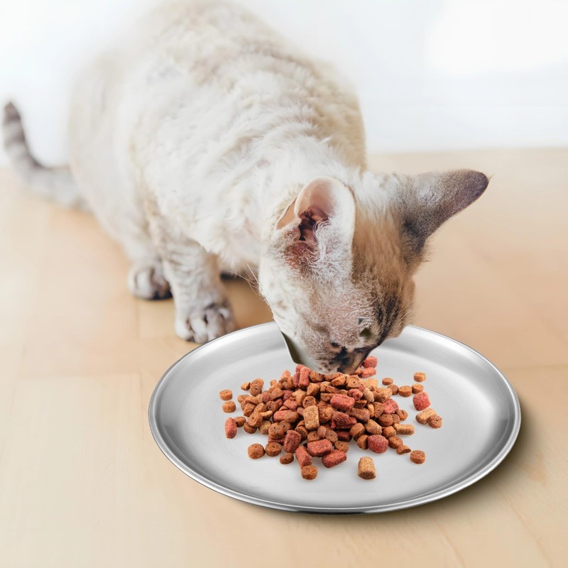 12 PCS Stainless Steel Cat Bowls, 6.7 x 0.6 in Shallow Whisker-Friendly Cat Feeding Bowl, Pet Feeding Dish for for Kittens Ferrets Stray