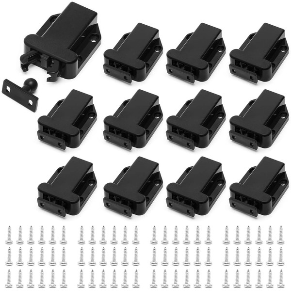 12 Pcs Touch Release Catch Latch Cupboard, Push to Open Catch Lock Black, ABS Push Latch for Cupboard and Drawer