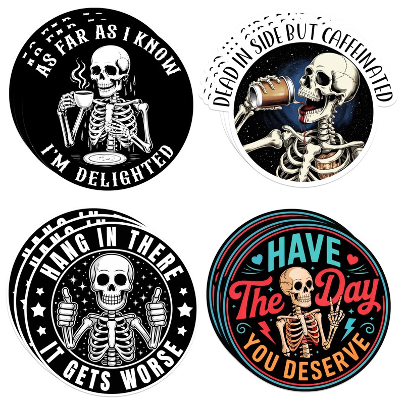 12 pegatinas divertidas de esqueleto de meme As Far As I Know I'm Delightful, Dead Inside But Cafeinated, Hang in There It Gets Worse, Have the Day You Mererve - Calcomanía impermeable para botella de