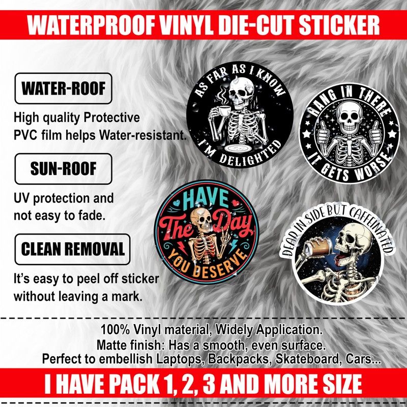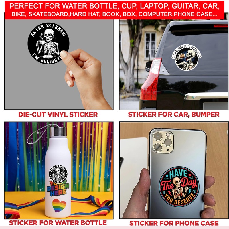 - Tamaño de 3 pulgadas: ideal para la mayoría de superficies. Cada calcomanía mide 3 pulgadas de diámetro, el tamaño perfecto para hacer una declaración sin dominar tu artículo. Son lo suficientemente grandes como para ser notados y apreciados, pero lo suficientemente compactos como para caber en portátiles, fundas de teléfono, cuadernos, cascos o botellas de agua con facilidad.