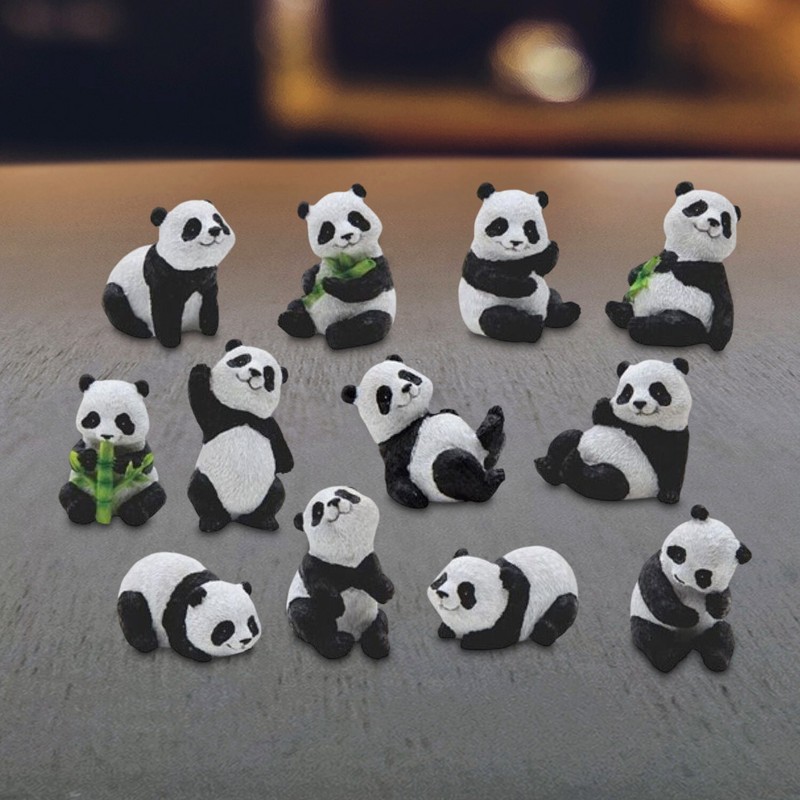 12-Piece Cute Panda 2.25"H Mini Panda Figurine Set Home Decor Unique Gift