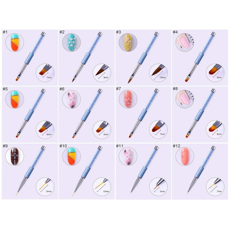 - 12 different nail art brushes Ideal for many types of nail art tips design, professional and perfect tools for your nail art design.