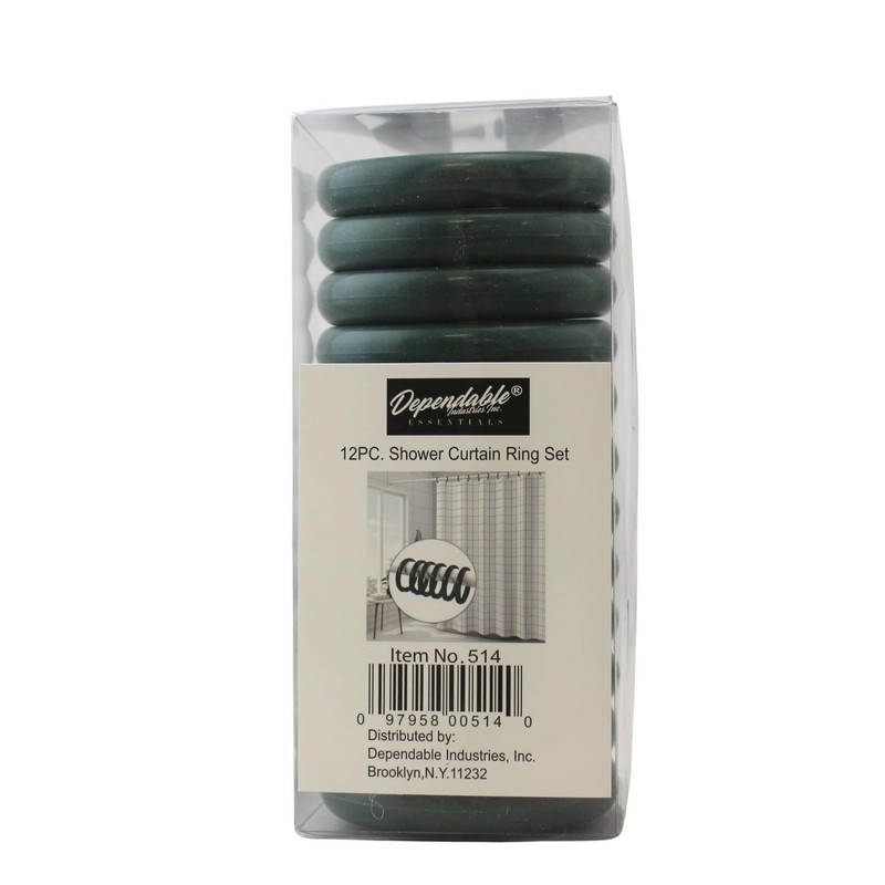 12 Piece Plastic Basic Locking Round Hook Easy Gliding Shower Curtain Rings Fits All Standard Size Shower Rods (Hunter Green)