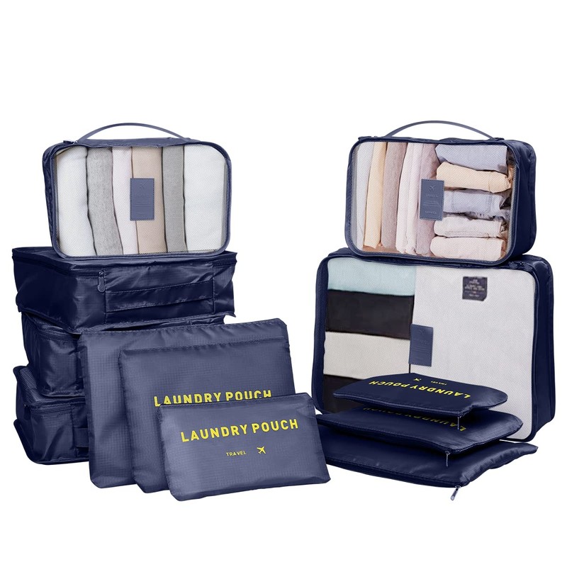 12-Piece Suitcase Organiser Set, Packing Cubes for Suitcase, Travel Accessories, Clothes Bags, Cosmetics, Travel Organiser, Packing Bags for Suitcases (Dark Blue)