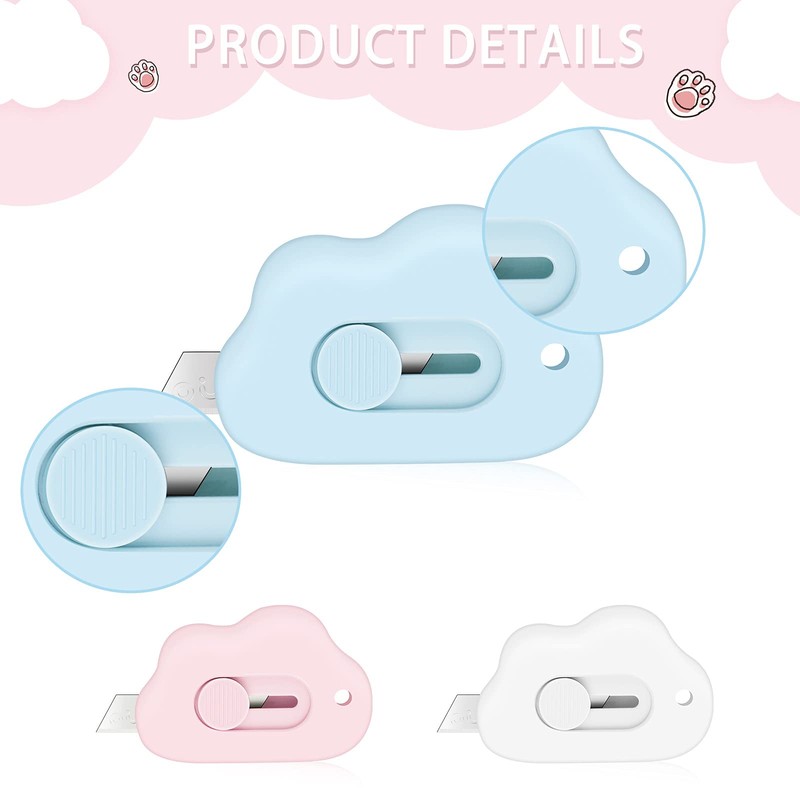- Special design: there are two different shapes; The shape of cloud Mini shape is exquisite and compact, and the tail is specially provided with a hanging hole, which is convenient to carry. The shape of cat claw is small, soft and cute, the blade is ready to use, and the design of push open automatic locking is convenient for you to use, so you won't be injured