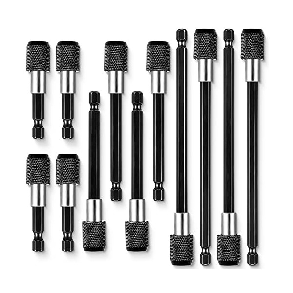 - Size details: these quick release bit holders are included 3 different lengths, 2 inches, 4 inches and 6 inches, there are 4 pieces in each size to meet with your various needs; Quick release extension has 1/4 inch driver adapter and 1/4 inch handle