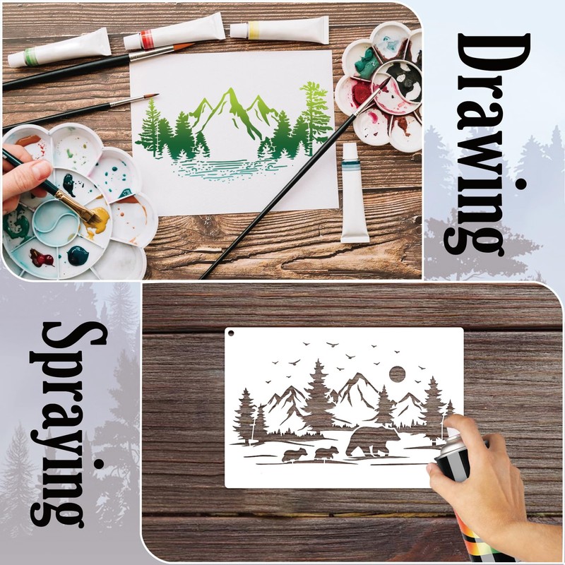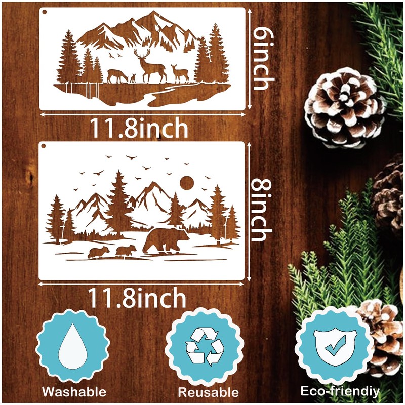 - Reusable Material: Our pine tree and mountain stencils are made of quality PET material, flexible and reliable, not easy to break, fade, rust or deform, washable and reusable, easy to clean and can be applied for a long time