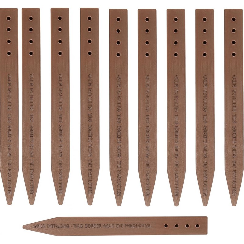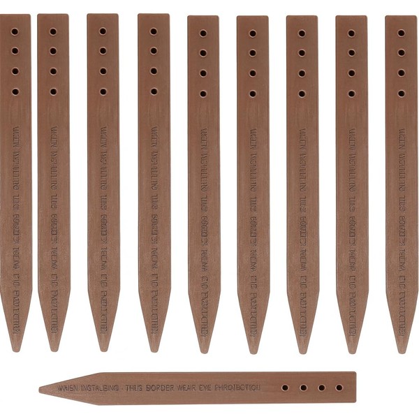 12" Plastic Bender Board Stakes Teak Color Heavy Duty Landscaping Edging and Border Stakes 10 Pack