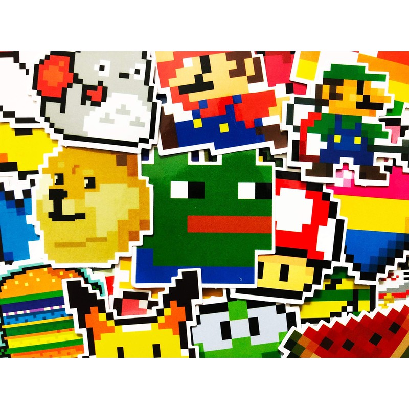 - Stickers include mario, pokemon, memes, vintage arcade, and more