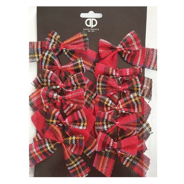 - Pack of 12 Red Tartan Print Bows