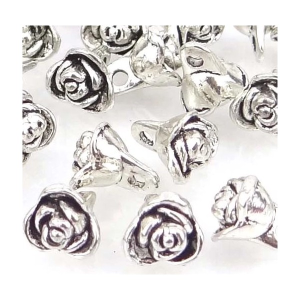 12 Rose Flower Antique Silver Pewter Charm 9x6mm